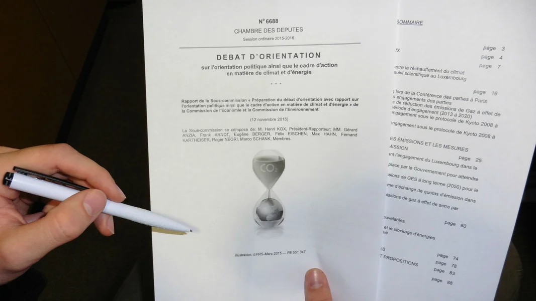 Eng Spezialkommissioun an der Chamber huet elo iwwert ee Joer d'Klima- an Energiepolitik analyséiert. Ënner der Presidence vum gréngen Deputéierten Henri Kox, deen och de Rapporter vun der Kommissioun war, ass een Dokument vu knapp 200 Säiten entstan. Thematiséiert ginn all relevant Beräicher vum Transport, iwwer d'Landwirtschaft bis bei d'Recherche, oder de Klimaschutz op lokalem Niveau.
