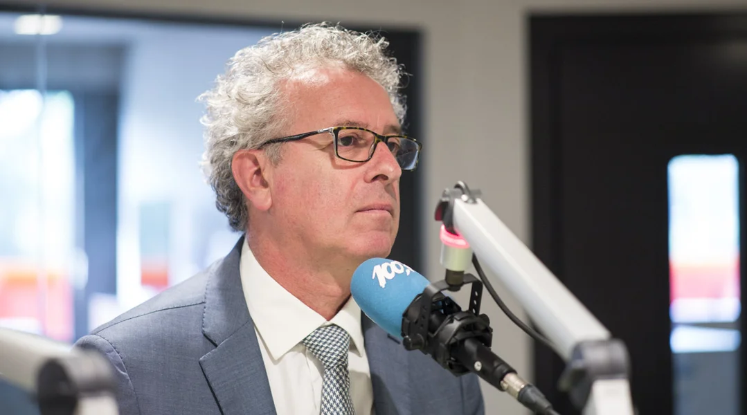Lauschtert de Finanzminister Pierre Gramegna um Mikro vum Pia Oppel: