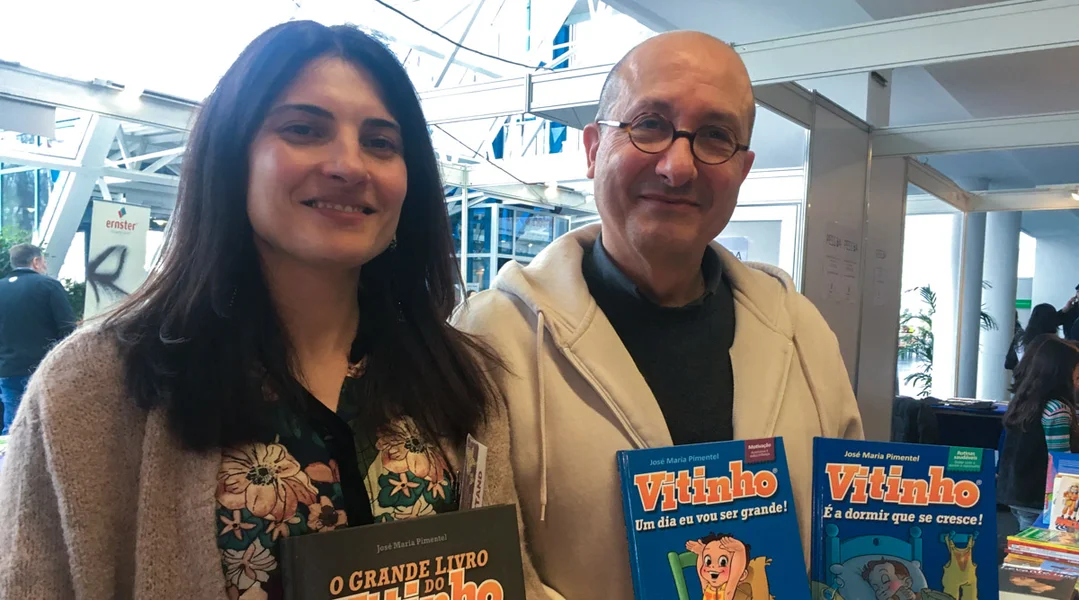 Beim Stand vun de portugisesche Bicher steet eng jonk Fra an en eeleren Här. Et ass de Schrëftsteller, Illustrateur an Editeur José Maria Pimentel. Hien ass awer virun allem wéinst dem Dessin animé Vitinho bekannt, dee vun 1986 bis 1997 op der Portugisescher Tëlee gelaf ass a Honnertdausende vu Kanner an de Schlof begleet huet.
