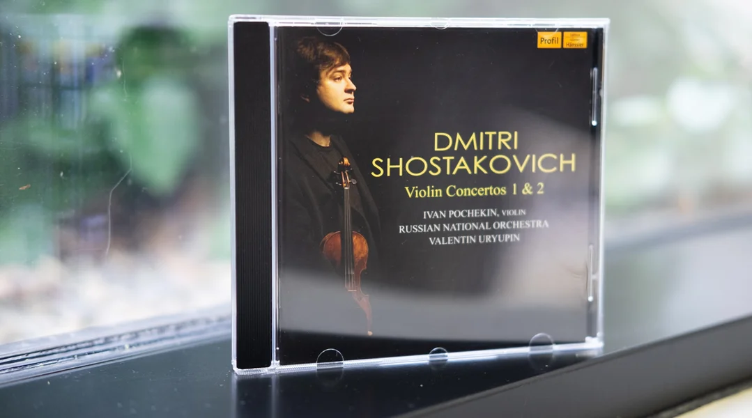 Dem Dmitri Schostakowitsch säin éischte Geieconcerto fänkt mat engem düsteren Unisono un. No dëser kuerzer Ausso an den déiwe Sträicher héiert een d'Gei mat hirem laangen, intensive Monolog. De Geiist Ivan Pochekin hëlt sech fir seng Interpretatioun vill Zäit. Hien deent d'Nouten, hält se duerch Spannung um Liewen a verzielt esou eng Geschicht. De Russian National Orchestra bleift dobäi ganz am Hannergrond an ënnerstëtzt de Monolog vum Geiist andeems e Stëmmungen ouni eegen Aussoen entstoe léisst.