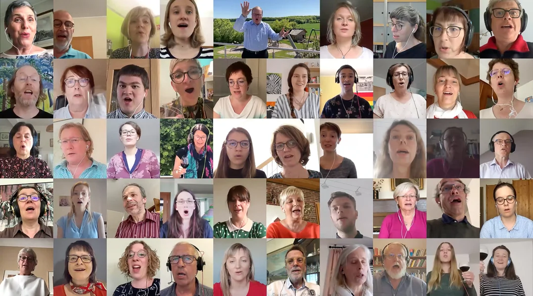 Mat engem Stëmmungslidd iwwer d'Gesellegkeet an d'Drénke wollt den Dirigent Marc Dostert de Participante vum Online-Chouer an den Zäite vum Corona eng Freed maachen.