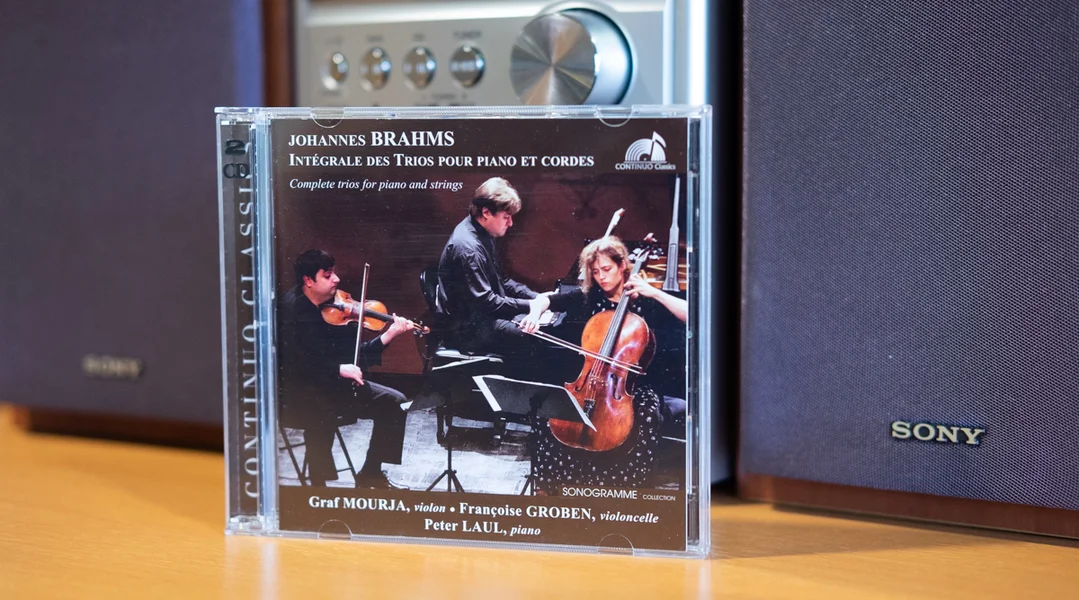 Leidenschaft, Gesang, Dramatik, Energie - alles stécht an dëser Opnam mat den Trioe fir Sträicher a Piano vum Johannes Brahms. Mir héieren dräi Museker, déi eng gemeinsam, eng passionéiert Musekssprooch schwätzen: d'Cellistin Françoise Groben, de Geiist Graf Mourja an de Pianist Peter Laul. Den Trio hat sech ugangs vum neie Joerdausend fonnt a forméiert. Den internationale Succès huet net laang op sech waarde gelooss, an et war nëmmen eng Fro vun der Zäit, datt och CD-Produktioune sollte gemaach ginn.