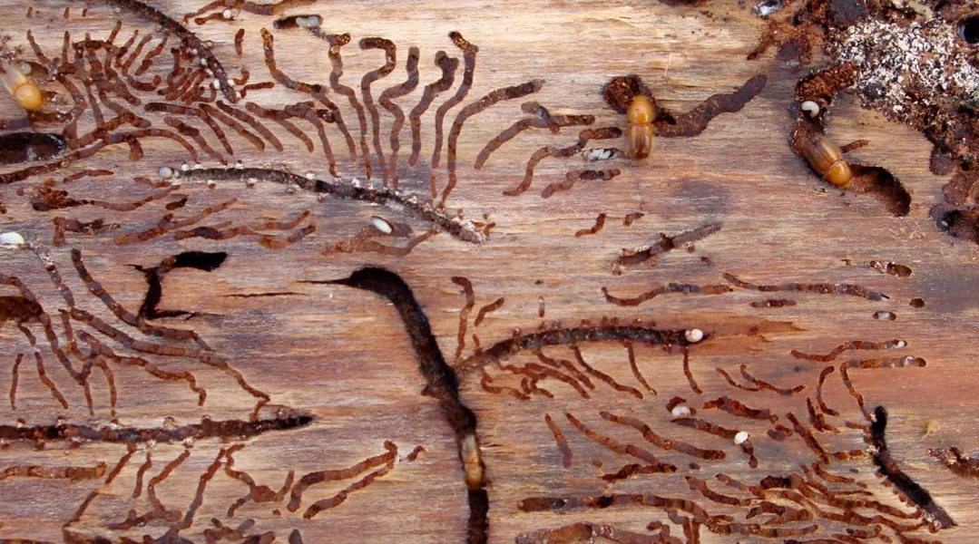Borkenkäfer E klengt Insekt mat grousser Auswierkung