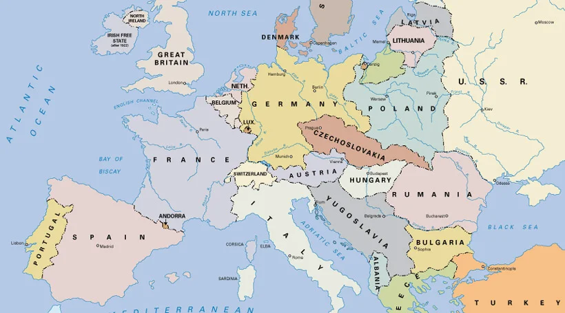 D'politesch Kaart vun Europa gouf 1918-1919 a ganz groussem Ausmooss nei gezeechent. Grouss multiethnesch Räicher, wéi d'Habsburger-Monarchie Éisträich-Ungarn an d'Osmanescht Räich sinn ënner dem militäreschen Drock vun den Entente-Muechten an duerch d'Proklamatioun vun neien Nationalstaaten op hirem Staatsgebitt auserneegebrach.