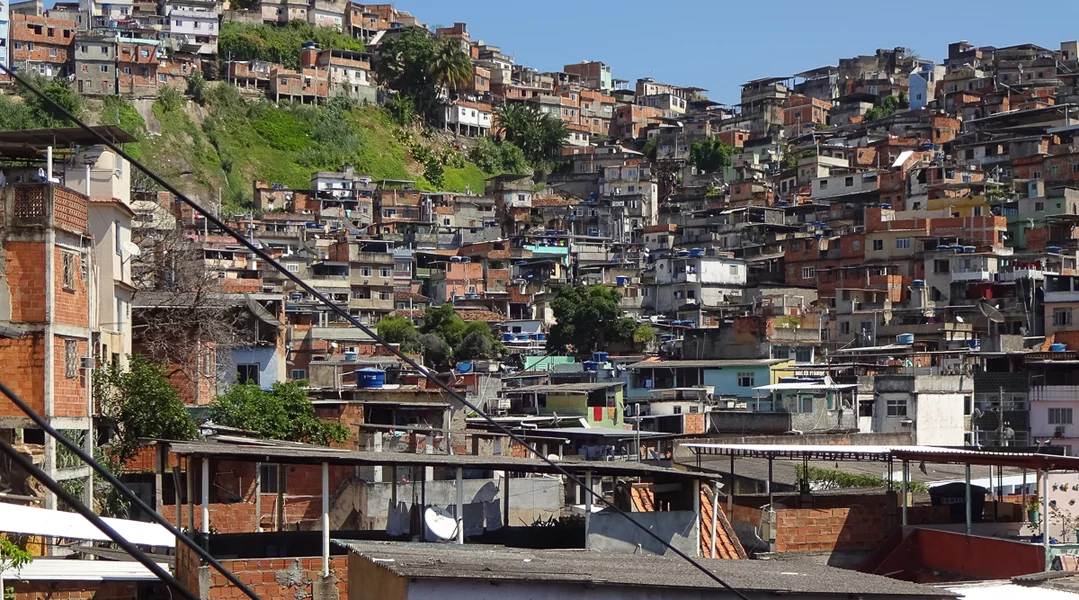Dobaussen zéien déi éischt Favelas laanscht, déi riseg Quartiere vun deenen, déi net vill bis guer näischt verdéngen an déi 25 Prozent vun der Populatioun ausmaachen. Favelas ginn et zu Rio iwwerall. Och 300 Meter hannert mengem Hotel fänkt eng un, a schonn an de nächster Parallelstrooss leien eng Dose Sans-abris um Trottoir, schlofen oder fléie mat Hëllef vu Substanzen duerch en Dram.