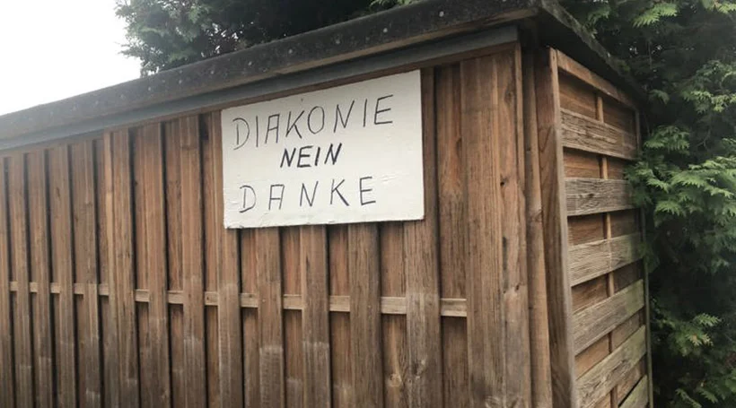 Doch da sind die handgeschriebenen Plakate und gedruckten Zettel an Garagen und Fenstern der Nachbarhäuser. "Hände weg von unserem Wohngebiet" und "Keine Diakonie, keine Lügner, keine unchristlichen Heuchler" steht da.