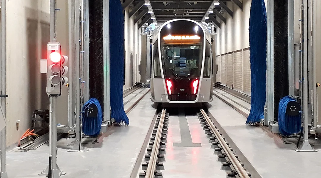Op der sougenannter Voie de Sablage gëtt Sand benotzt, fir d'Reiwung tëschent de Schinnen an de Rieder z'erhéijen. Hannendrun ass d'Wäschanlag vum Tram.