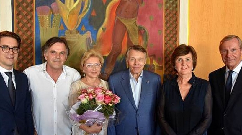 Den Dirigent Mariss Jansons gouf elo mam Salzburger Festspielnadel mit Rubinen ausgezeechent. De Manuel Ribeiro mat Detailer.
